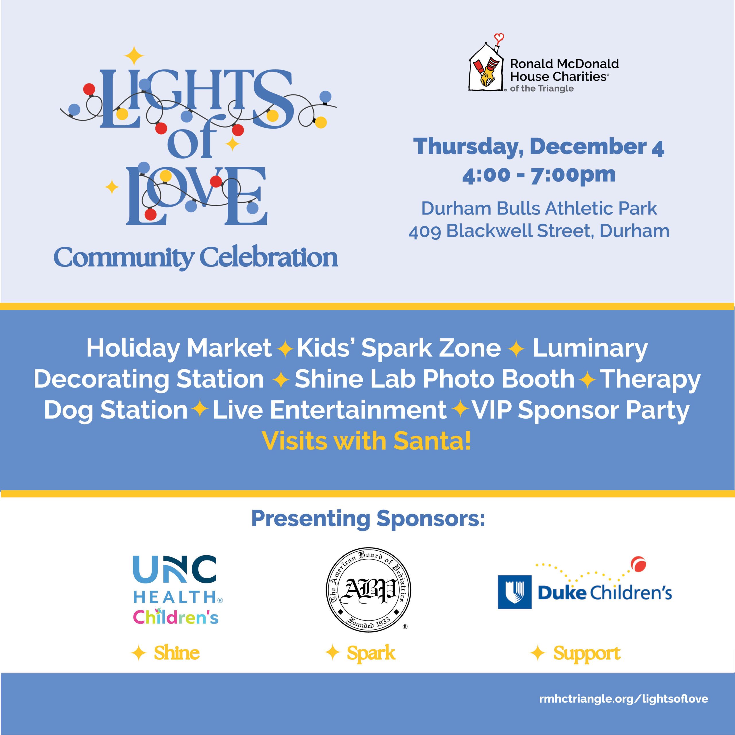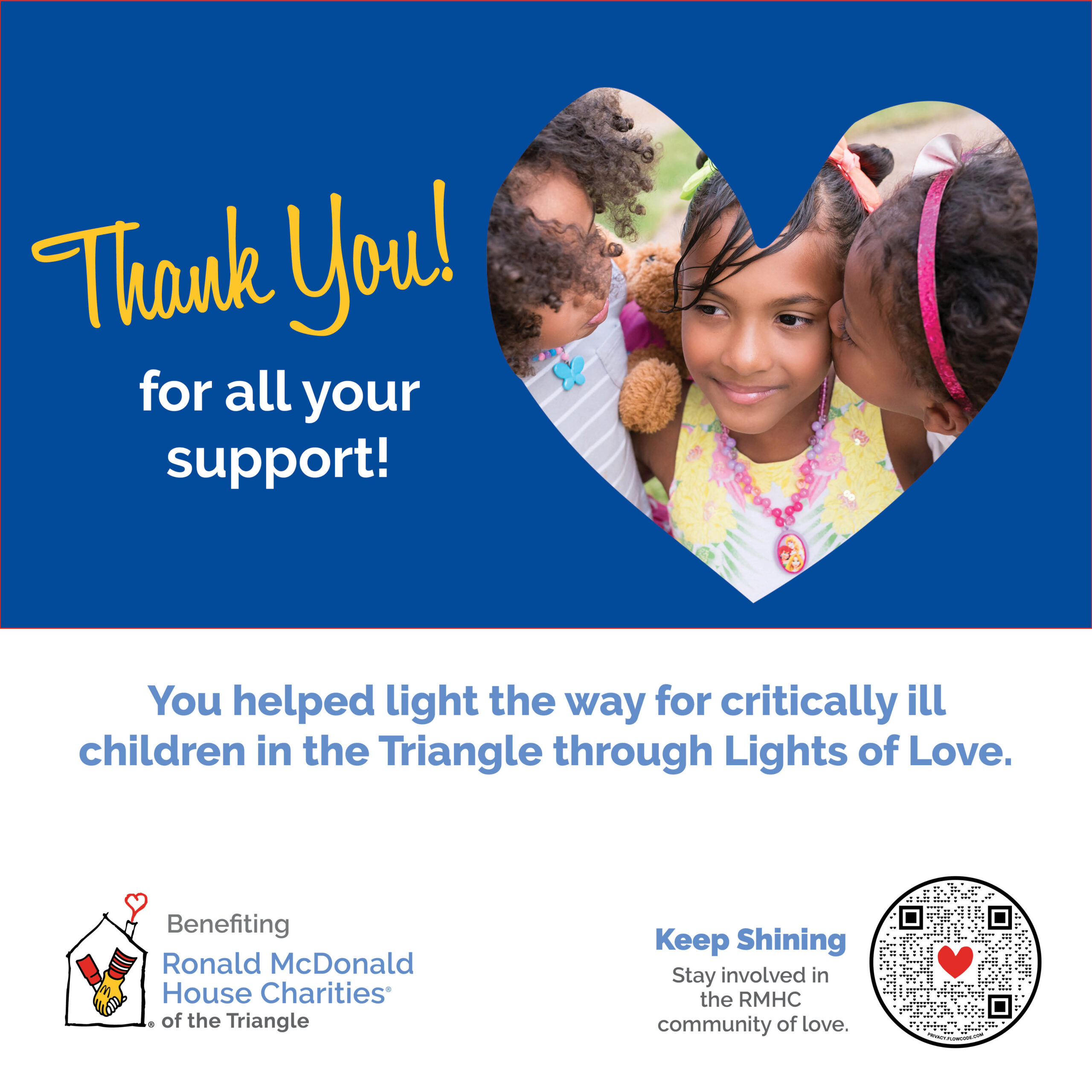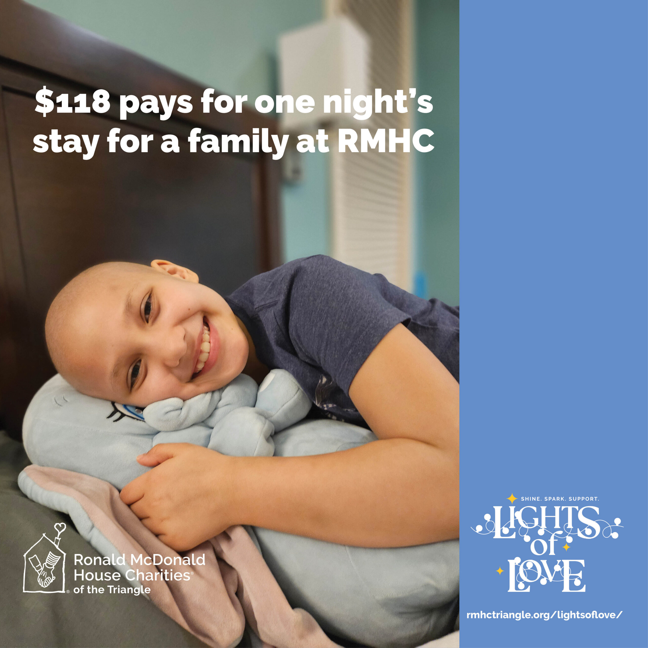 Tag @RMHCtriangle and use hashtags: #rmhctriangle, #LightsofLove #Keepingfamiliesclose
